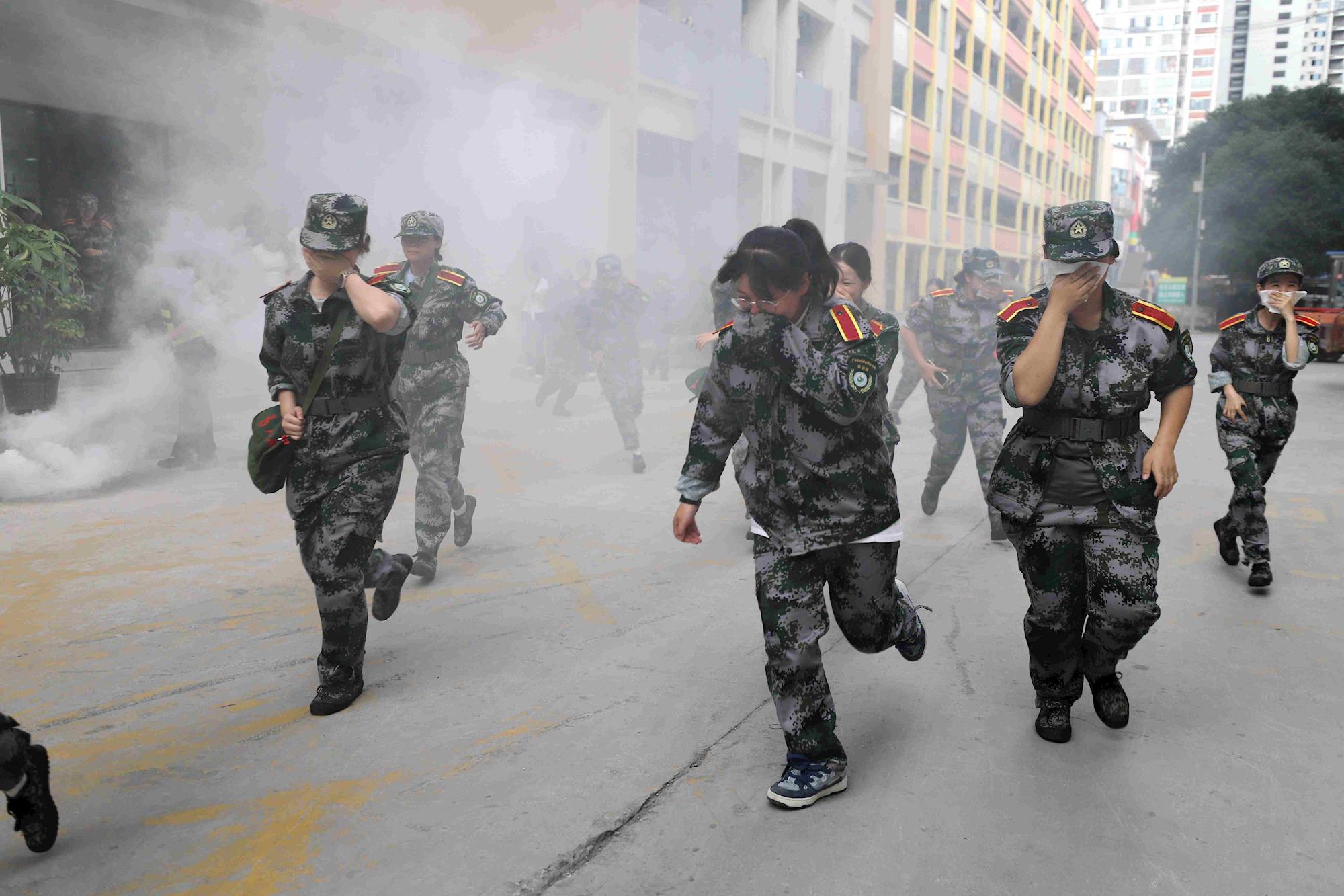 17点30分,伴随着警报信号响起,所有参演人员在疏散引导人员指挥下,弯腰、虎头、捂住口鼻,沿指定疏散路线快速、有序撤离至安全区域。共用时7分05秒,9600多名学生安全完成撤离。疏散过程中全体人员不慌不乱,撤离迅速,动作规范,基本达到了本次演练活动的目的。