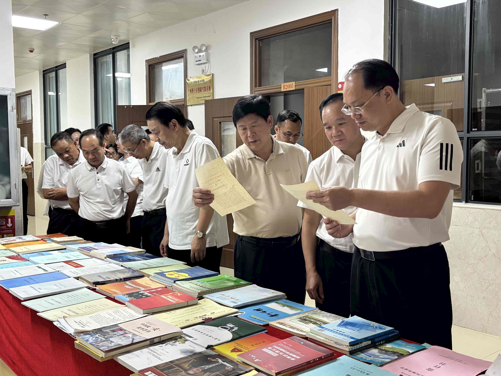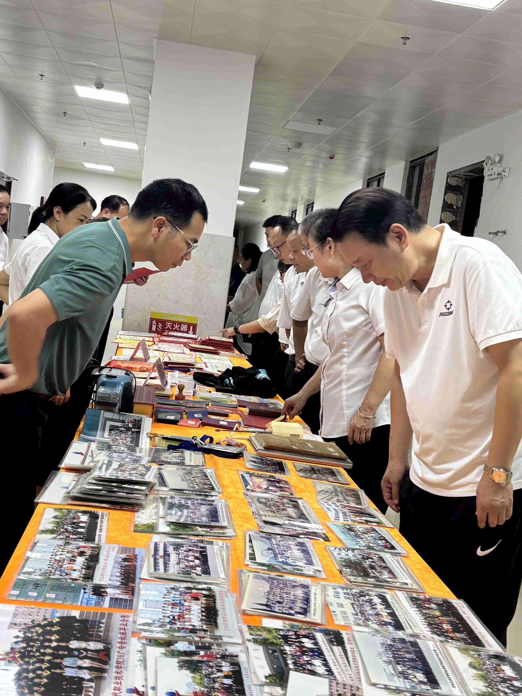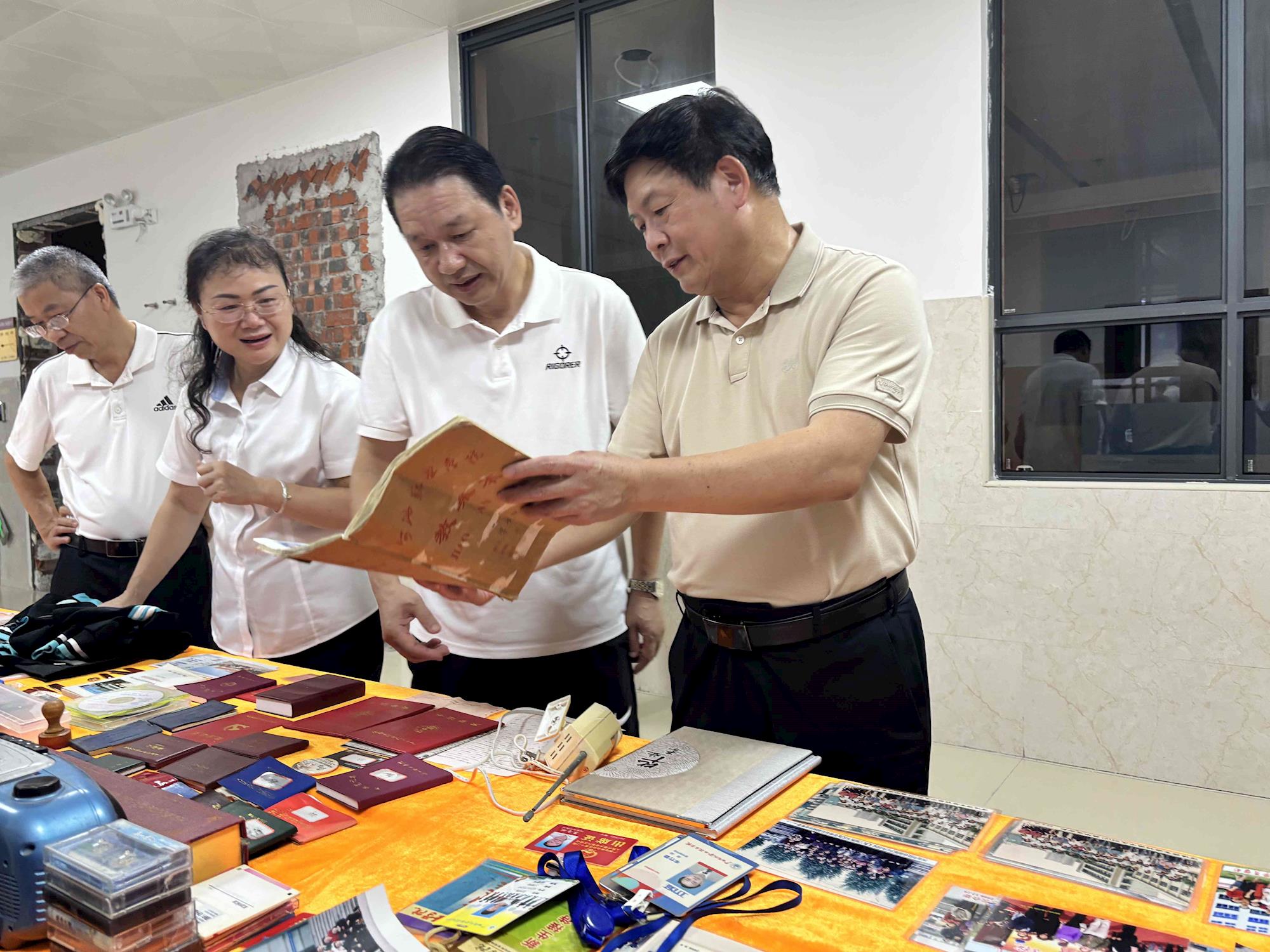 会前,韦伟松、黄绍光等领导和其他与会人员还一同参观了教职工和校友捐赠的校史材料展陈列。