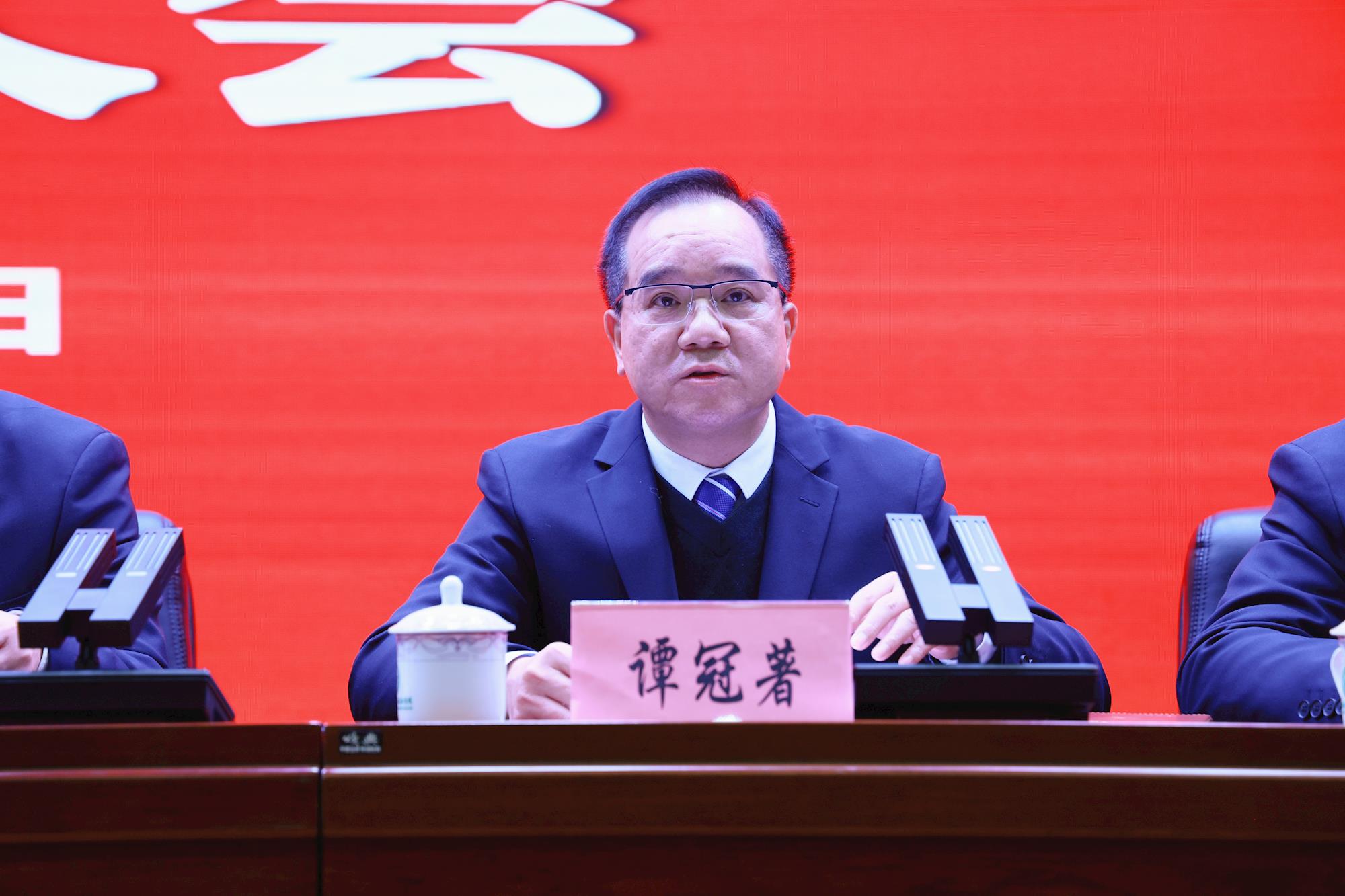 校党委副书记、河池市职业教育中心学校校长谭冠著宣读表彰文件