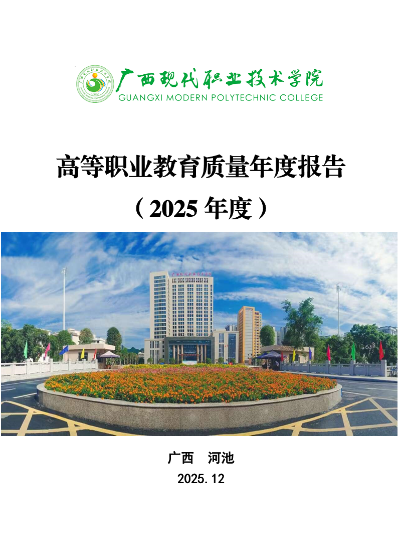 广西现代职业技术学院职业教育质量报告(2025年度) 来源:教务处 发布时间:2025-12-31 09:35:37 浏览次数: 次 【字体:小 大】 终审:gxxdxcb001 【打印正文】 相关信息