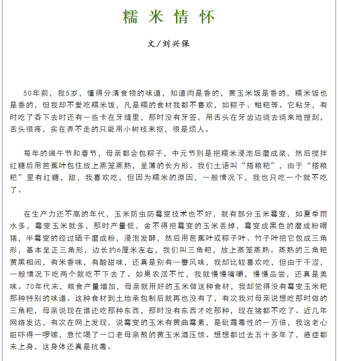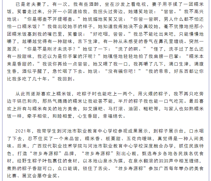 【老鸟·壮乡寿源粽专栏】刘兴保作品:糯米情怀 来源:老鸟传媒 发布时间:2023-02-24 08:30:26 浏览次数: 次 【字体:小 大】 链接:https://mp.weixin.qq.com/s/ni2TpP_R__BOkbxReAmCZg 终审:gxxdxcb007 【打印正文】 相关信息