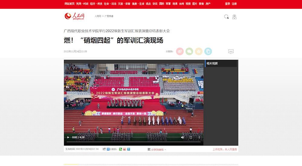 [人民网]燃!“硝烟四起”的军训汇演现场 来源:宣传部 发布时间:2022-11-24 12:55:15 浏览次数: 次 【字体:小 大】 http://gx.people.com.cn/n2/2022/1124/c179409-40207986.html 终审:gxxdxcb004 【打印正文】 相关信息