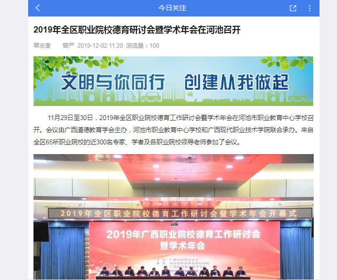 [河池手机TV]2019年全区职业院校德育研讨会暨学术年会在河池召开 来源: 发布时间:2019-12-03 20:30:26 浏览次数: 次 【字体:小 大】 http://hcsjt.qingk.cn/information-info/hcsjt/e64f54a208c646e3946511491413a954/pufefctcoacaspdpauswsqpqecqvsvap/c0d7efe6bcca43058d707adcff915b46/c8c6fb54e44e4c3e85516f46902c6d44?shareSource=qingk&from=timeline 终审:gxxdxcb002 【打印正文】 相关信息