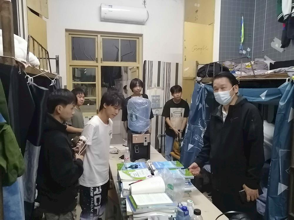 为全面贯彻全区高校安全稳定工作视频会议精神,了解学生学习生活情况,掌握学生的思想状态,进一步加强学校疫情防控防控工作,保障广大师生身体健康与生命安全,维护正常教育教学秩序,11月29日晚,学校党委书记韦伟松、校长黄绍光、纪委书记张斌,副校长卢森焕、黄耀、杨奎,分别率领中层干部深入学校各二级学院学生宿舍开展调研,给学生们送去殷切关怀和深切慰问。