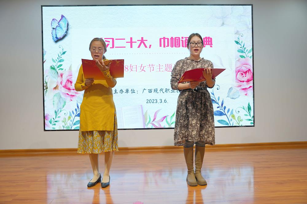 活动中,女教职工代表们展示了诗文诵读《国风·周南·关雎》《木兰辞》《鹧鸪天 祖国沉沦感不禁》《致橡树》《做最好的自己》等,在感受“悦读”之美的同时,充分展现了女教职工的风采和气质。