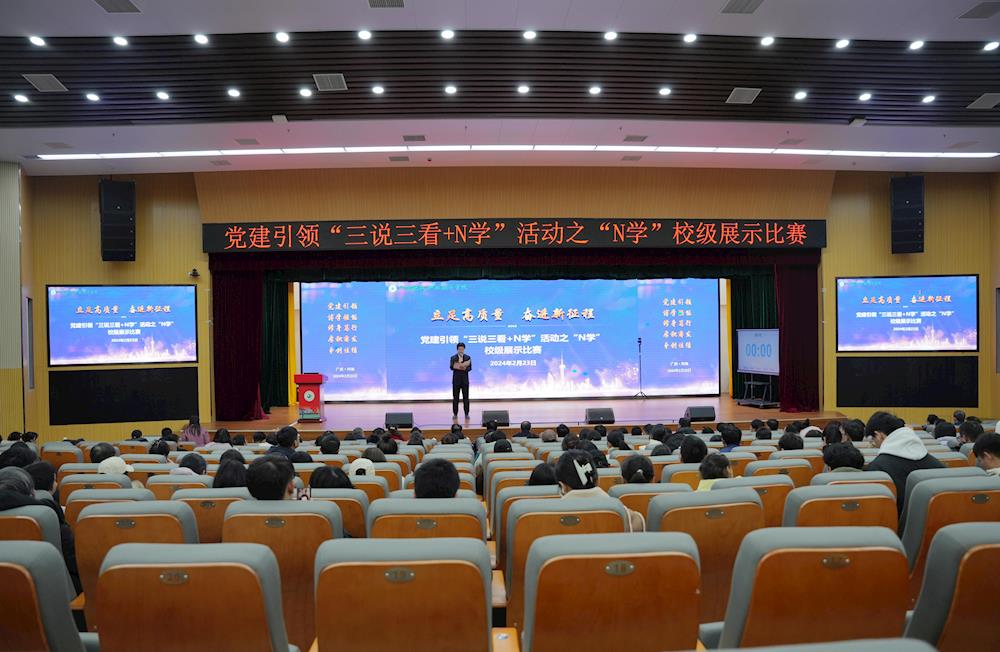 “三说三看+N学”,是我校党委以“党建引领,注重实效”为原则开展的教师综合素质能力提升学习活动。“三说”是指说政策文件、说产业职业、说专业课程。通过“说形势政策”学习国家职业教育的最新方针政策,把握职业教育事业发展的新形势与新任务;通过“说产业职业”了解产业行业发展现状及前景,定位专业面向的职业,找准主要就业岗位;通过“说专业课程”展现教师教学内容、教学方法、课程特色及创新成果。“三看”是指看中央新闻、看广西新闻、看河池新闻。通过“三看”了解国家、区域经济社会发展动态,把握时代脉搏,将时政热点融入教育教学。“N学”是指教师结合自身实际自选学习内容以丰富知识结构,提高为人师者的素质和能力。