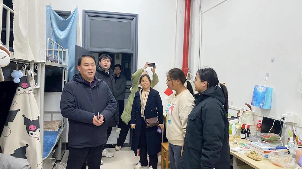 岑华带队走访教师教育学院学生宿舍,对宿舍的卫生、内务及安全等方面进行了细致检查,并认真听取同学们的意见和建议,鼓励同学们要保持良好的生活习惯。