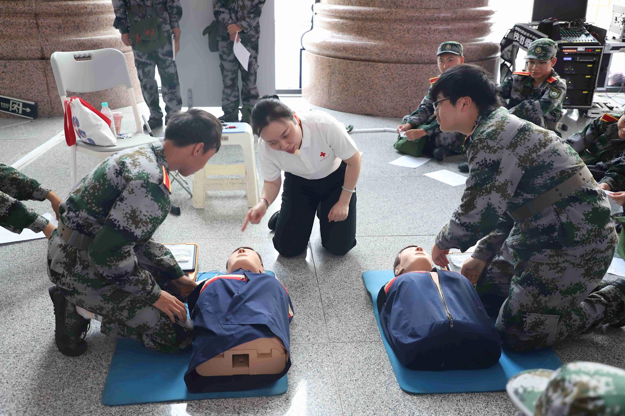 在广西红十字会救护训练中心专业团队的精心指导下,通过“理论讲解+实操实训+严格考核”的模式,新生们系统学习了急救基础理论、心肺复苏(CPR)、自动体外除颤器(AED)使用、海姆立克急救法、创伤救护等实用技能。