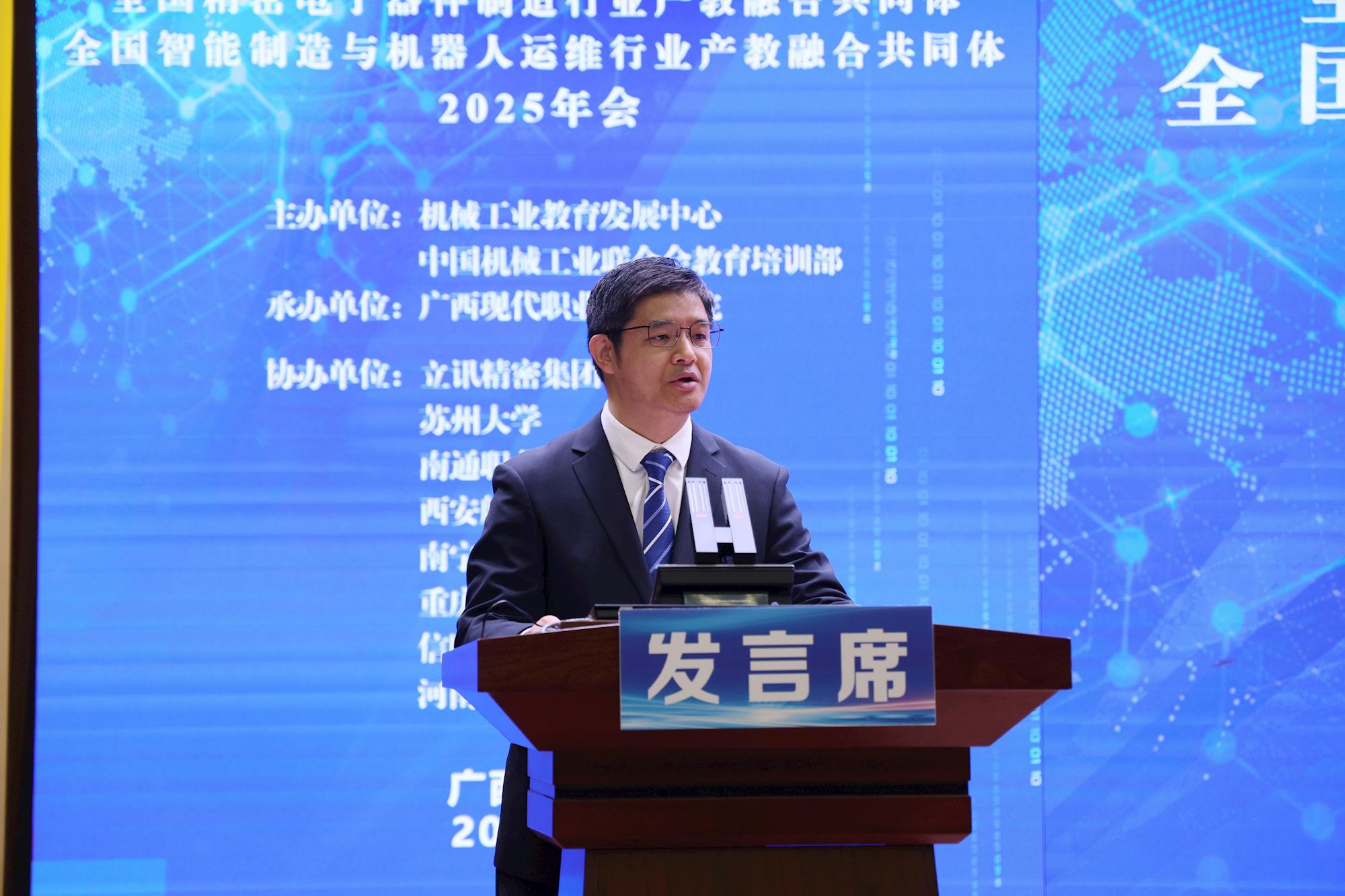 共绘产教融合新图景 赋能智能制造新发展——广西现代职院成功承办全国精密电子器件制造行业产教融合共同体、全国智能制造与机器人运维行业产教融合共同体2025年会