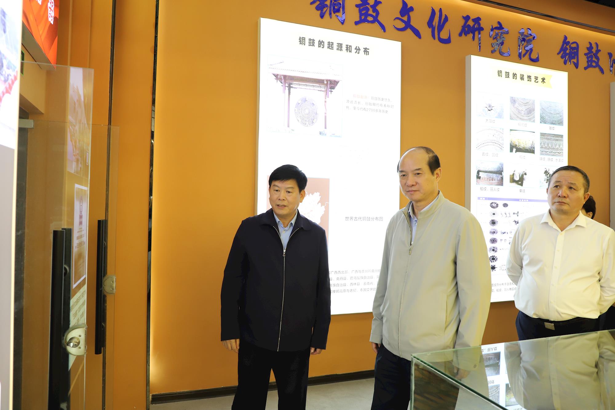 调研组一行先后走访了冶金博物馆、工业机器人实训室和无人机展馆,实地考察了工匠学院的实训设施与教学场景。在冶金博物馆,韦伟松详细介绍学校铜鼓文化传承和河池“中国有色金属之乡”优势;在工业机器人实训室,调研组一行详细了解设备配置、教学模块以及学生技能训练的实际情况;在无人机展馆,调研组与校方就各类无人机的应用场景和模拟训练设备的教学效果进行了深入交流。